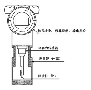 電容式靶式流量計(jì)主要由測(cè)量管(外殼)、新型電容力傳感器(含阻流元件)、積算顯示和輸出部分組成。根據(jù)不同的介質(zhì)和工,必須選用相適應(yīng)的電容力傳感器,因此,用戶(hù)提供準(zhǔn)確的計(jì)量對(duì)象及參數(shù),生產(chǎn)廠(chǎng)家選用合適的的電容力傳感器是產(chǎn)品能否計(jì)量準(zhǔn)確的關(guān)鍵。