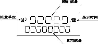 流量計(jì)顯示屏為液晶顯示屏,其顯示內(nèi)容及位置見(jiàn)(圖3)