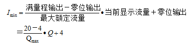 以上圖中Imin 為流量計(jì)最小顯示流量所對(duì)應(yīng)的電流輸出值,其輸出值的大小為: